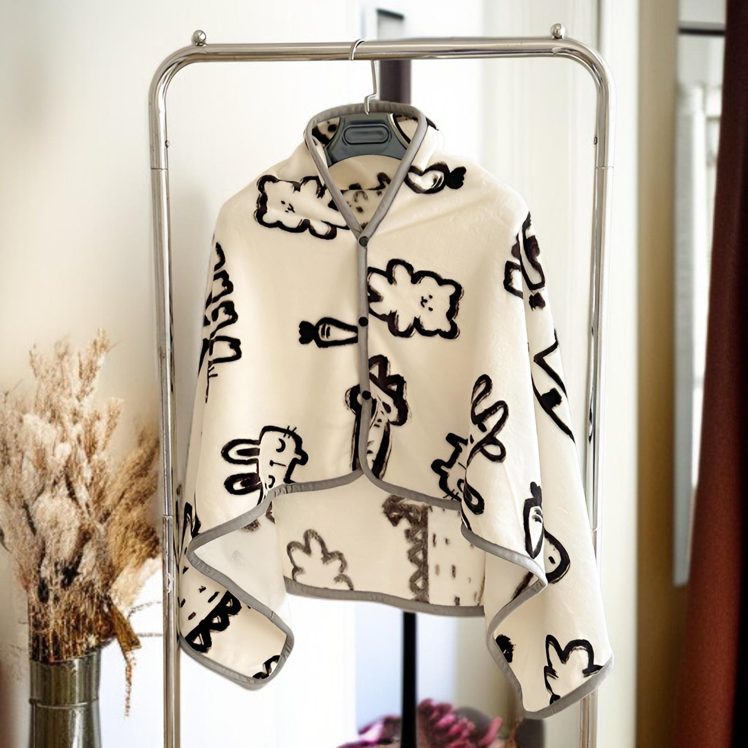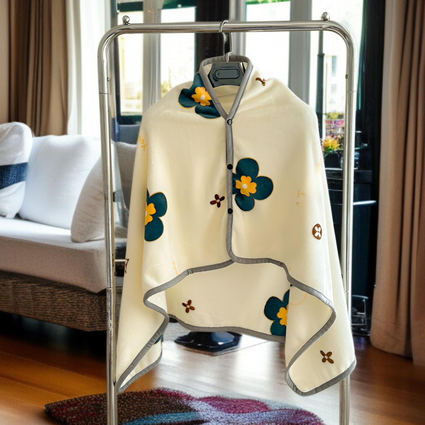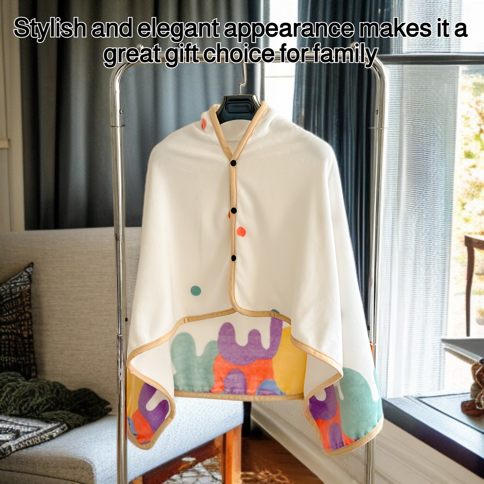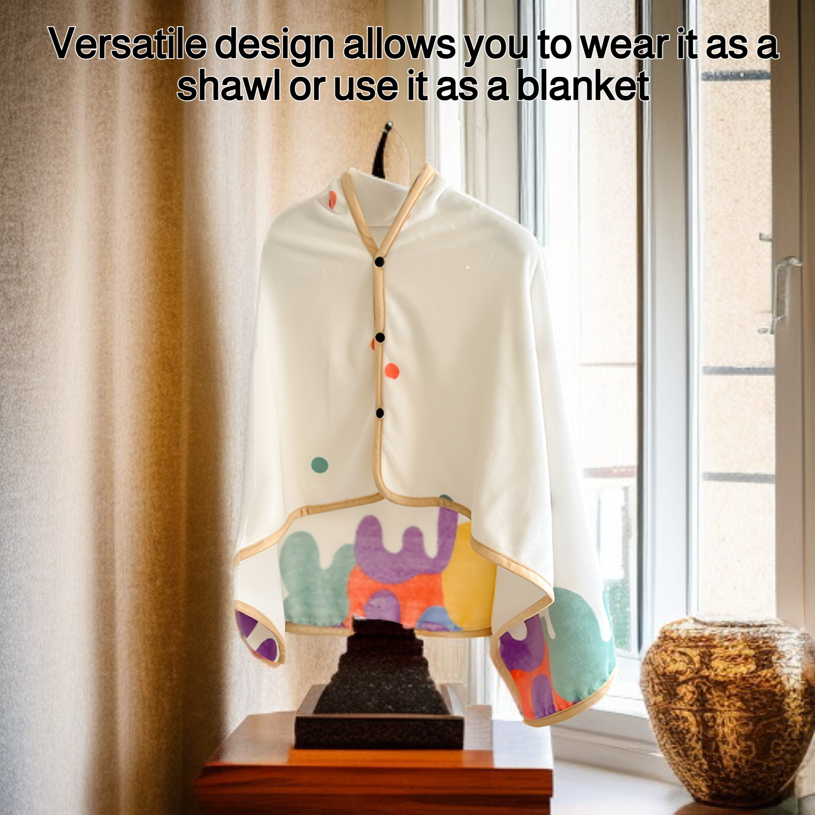 ● Versatile design allows you to wear it as a shawl or use it as a blanket, making it perfect for both relaxation at home and on-the-go convenience.