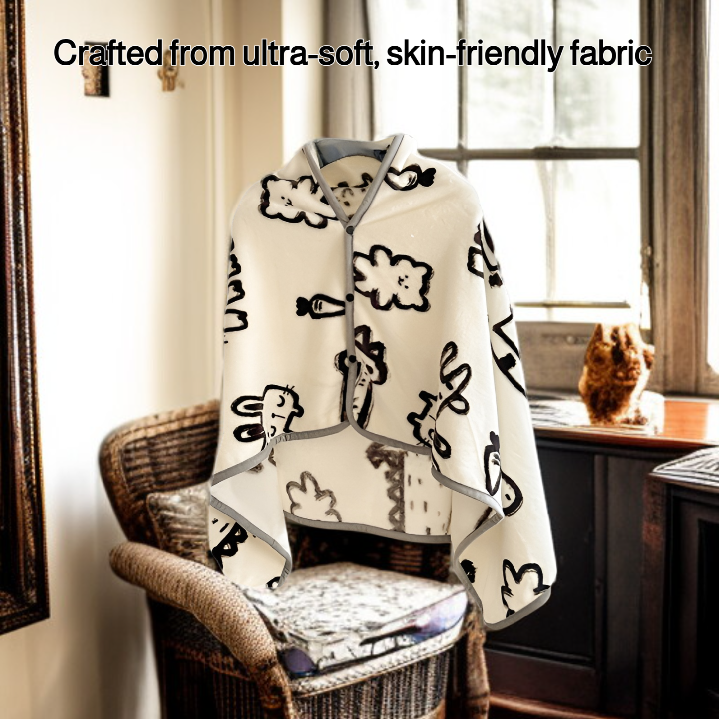 ● Crafted from ultra-soft, skin-friendly fabric, the Shawl Blanket provides cozy warmth and comfort for lounging, traveling, or outdoor activities.