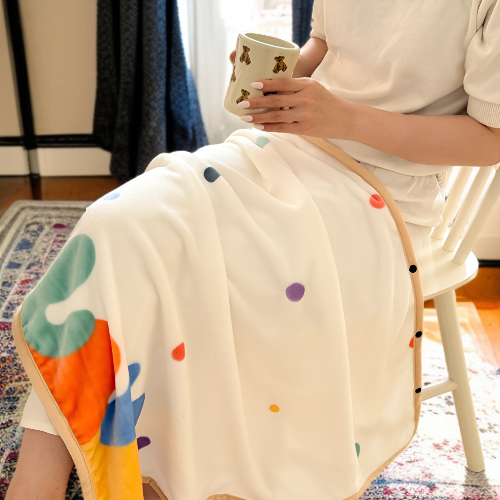 ● Lightweight yet insulating, this blanket is easy to carry and store, ensuring you stay warm without feeling weighed down wherever you are.