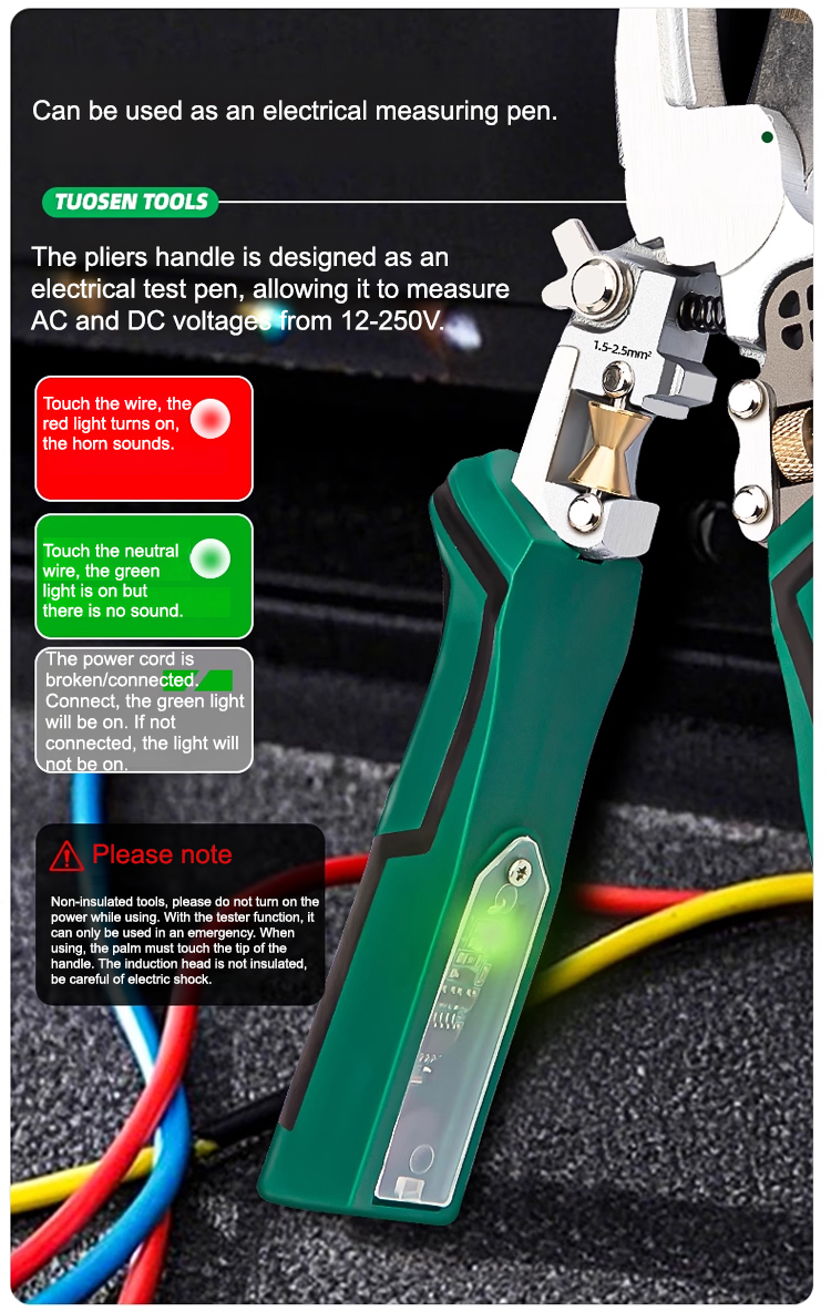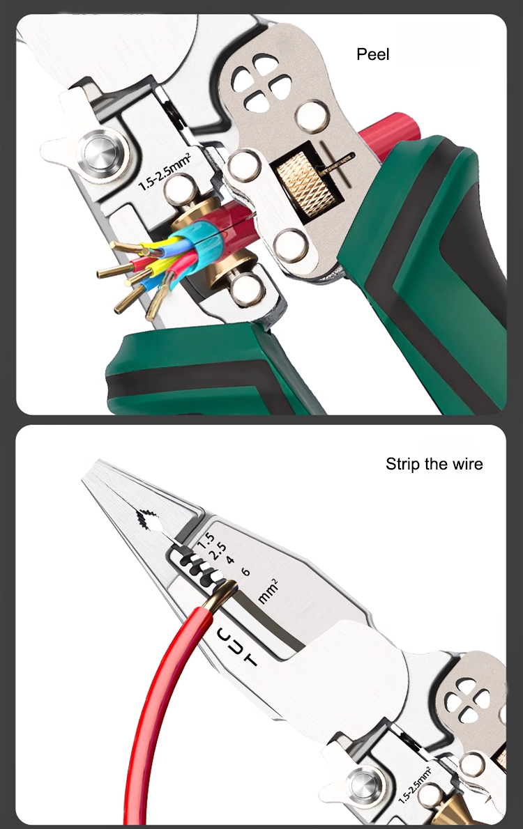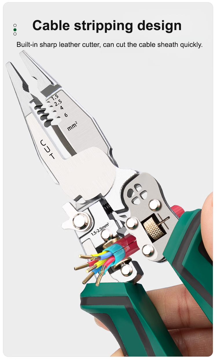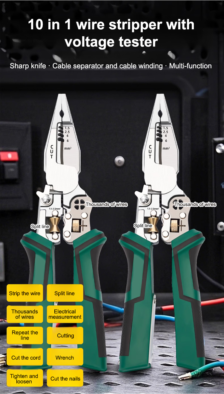 Multi-function pointed-nosed wire stripping pliers